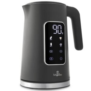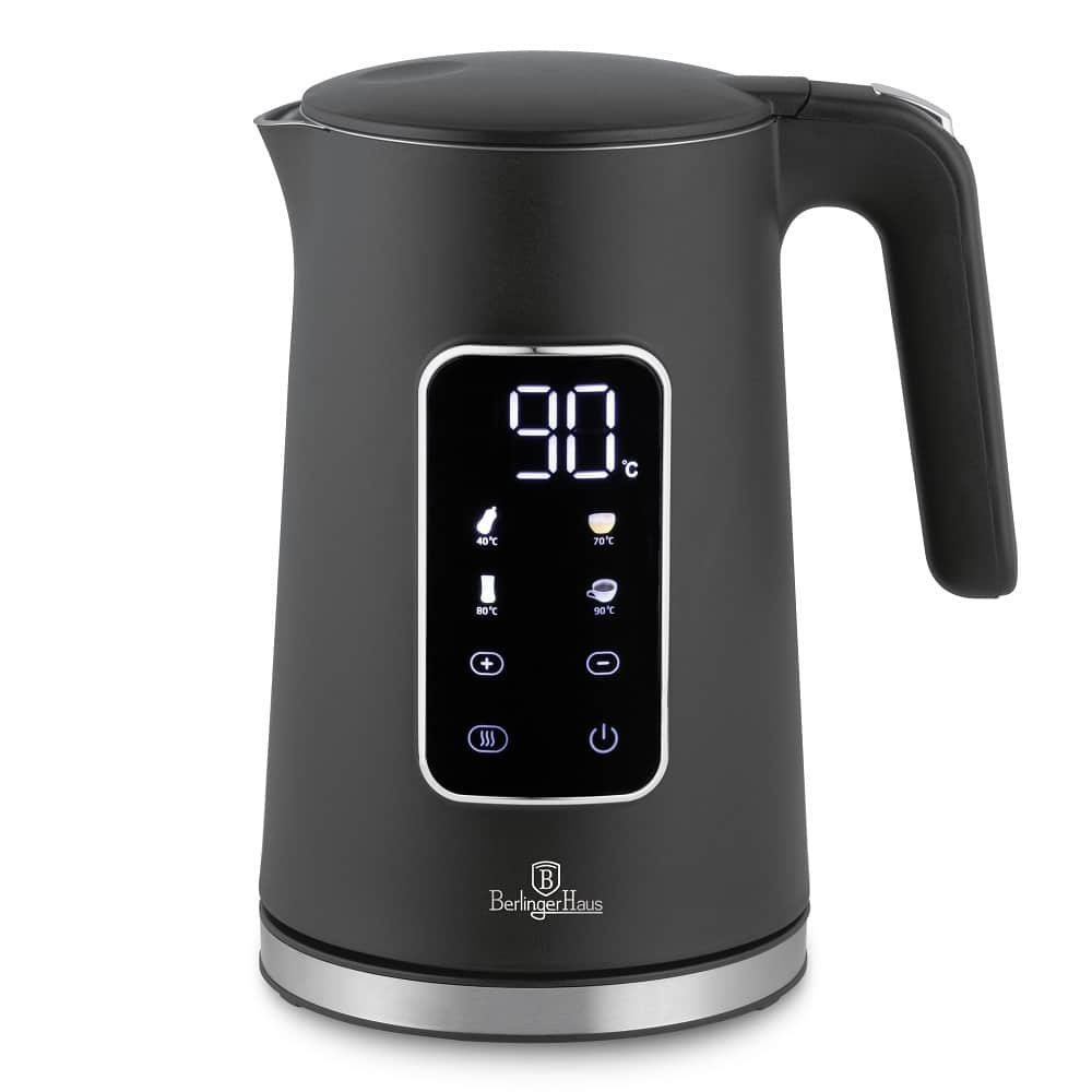 ☕ Комбинација од модерна технологија и елеганција: електричниот бокал со дисплеј од Berlinger Haus Anthracite Collection ви нуди прецизно прилагодување на температурата за сите ваши омилени топли напитоци.