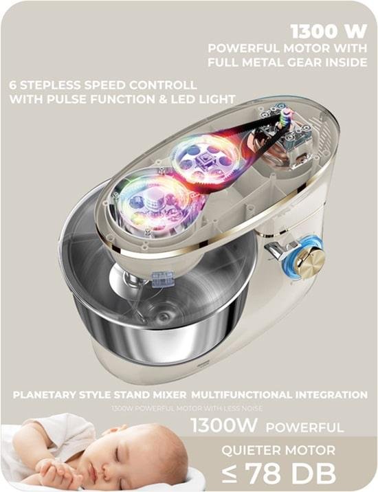⚙️ Вдлабете се во готварскиот свет со Berlinger Haus BH9510 Sahara миксерот, инспириран од мирната убавина на пустината Сахара. Овој моќен миксер е совршен партнер за вашите готварски предизвици, овозможувајќи ви да мешате, матите и подготовувате совршени теста и други јадења со леснотија и стил.