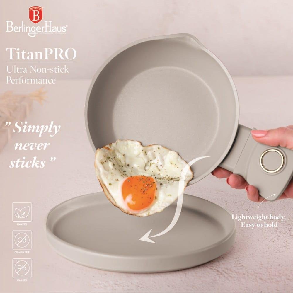 Оваа компактна мини тава е изработена од кован алуминиум со трослојна TitanPro нелеплива обвивка за здраво и лесно готвење. Идеална е за подготвување мали порции, брзи оброци или пржење јајца и зачини со совршени резултати.