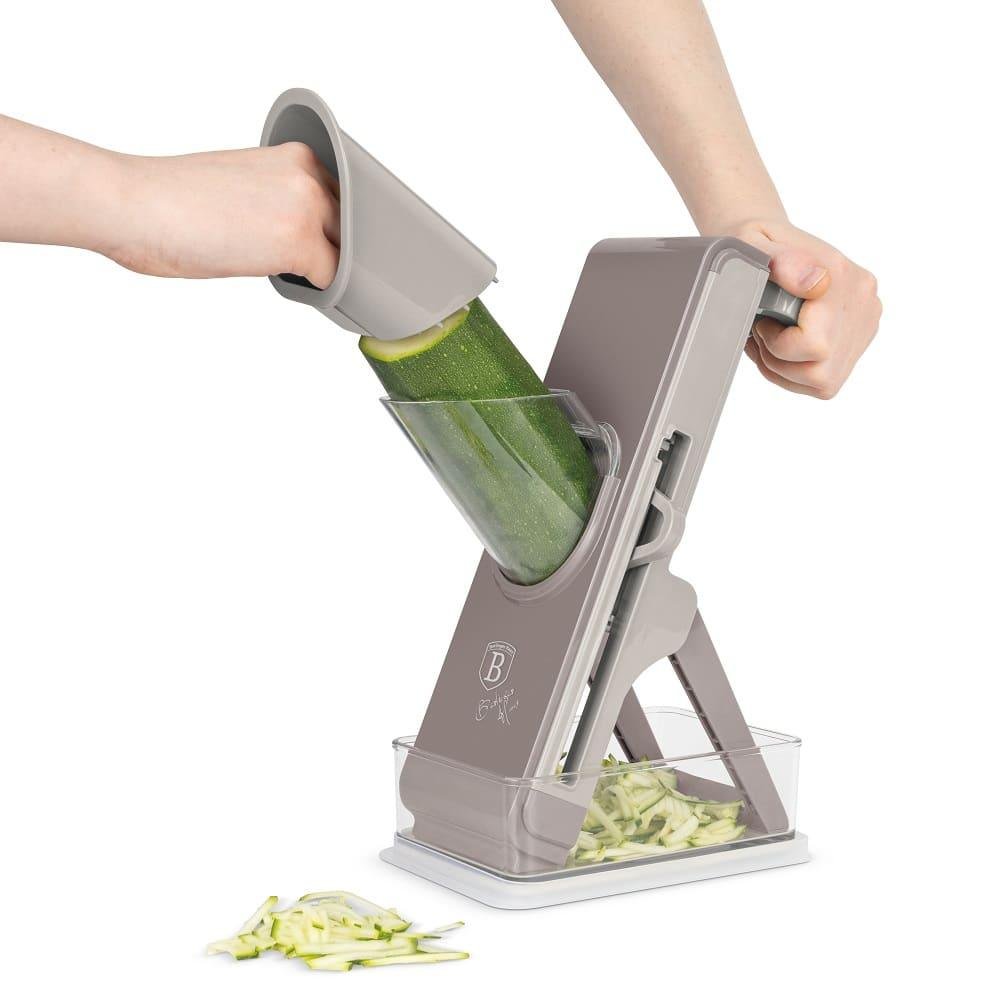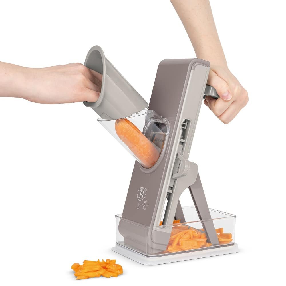🥒 Брзо и лесно рендајте и сецкајте зеленчук со Berlinger Haus BH8798 мултифункционалното ренде од Sahara Taupe колекцијата. Овој практичен и издржлив уред овозможува разни прецизни и рамномерни пресекувања за вашите салати, гарнитури и други јадења.