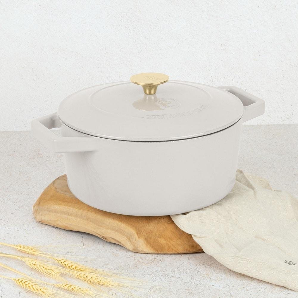 🍲 Елеганција и врвен перформанс во вашата кујна. Оваа тава е изработена од издржливо леано железо, кое овозможува рамномерна распределба и задржување на топлината за совршено готвење на чорби, печења и бавно готвење. Стилски дизајн кој го красат вашето кујнско опкружување.